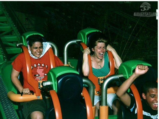 Számomra ez a szakasz volt az egész kaland legborzalmasab része, ugyanis észrevettem, hogy az én biztonsági pántom lötyög. A kezemet könnyedén tudtam kb. négy-öt centit mozgatni. Ám ekkor már haladtunk fölfelé. Nagyon lassan. Szóltam a mellettem ülő barátnőmnek, az övé nem mozgott, úgyhogy azt is fogtam a kezemben, remélve, hogy ez megment majd a zuhánástól. Ekkor felértünk a domb tetejére és őrületes száguldás kezdődött. Azt sem tudtam, hogy mikor voltunk fejjel lefelé. Itt már nem volt időm gondolkozni, önkéntelenül együtt visítottam én is a többiekkel. Az út végén meglepve tapasztaltam, hogy még az ülésben ülök, ellenőriztem a pántot, 4-5 centis holtjáték után már nem lehetett mozgatni. Aznap még ötször utaztam a ciklonon.
